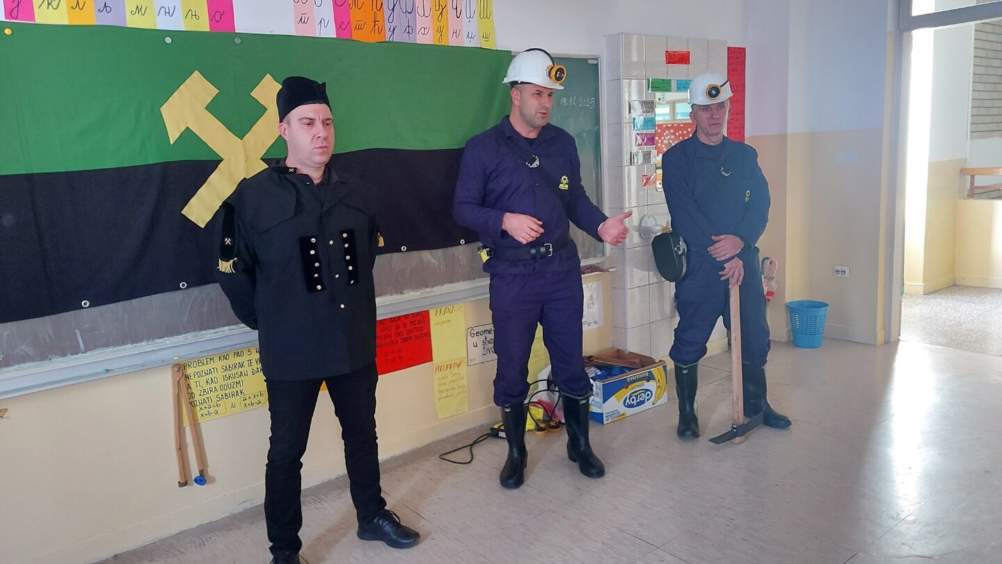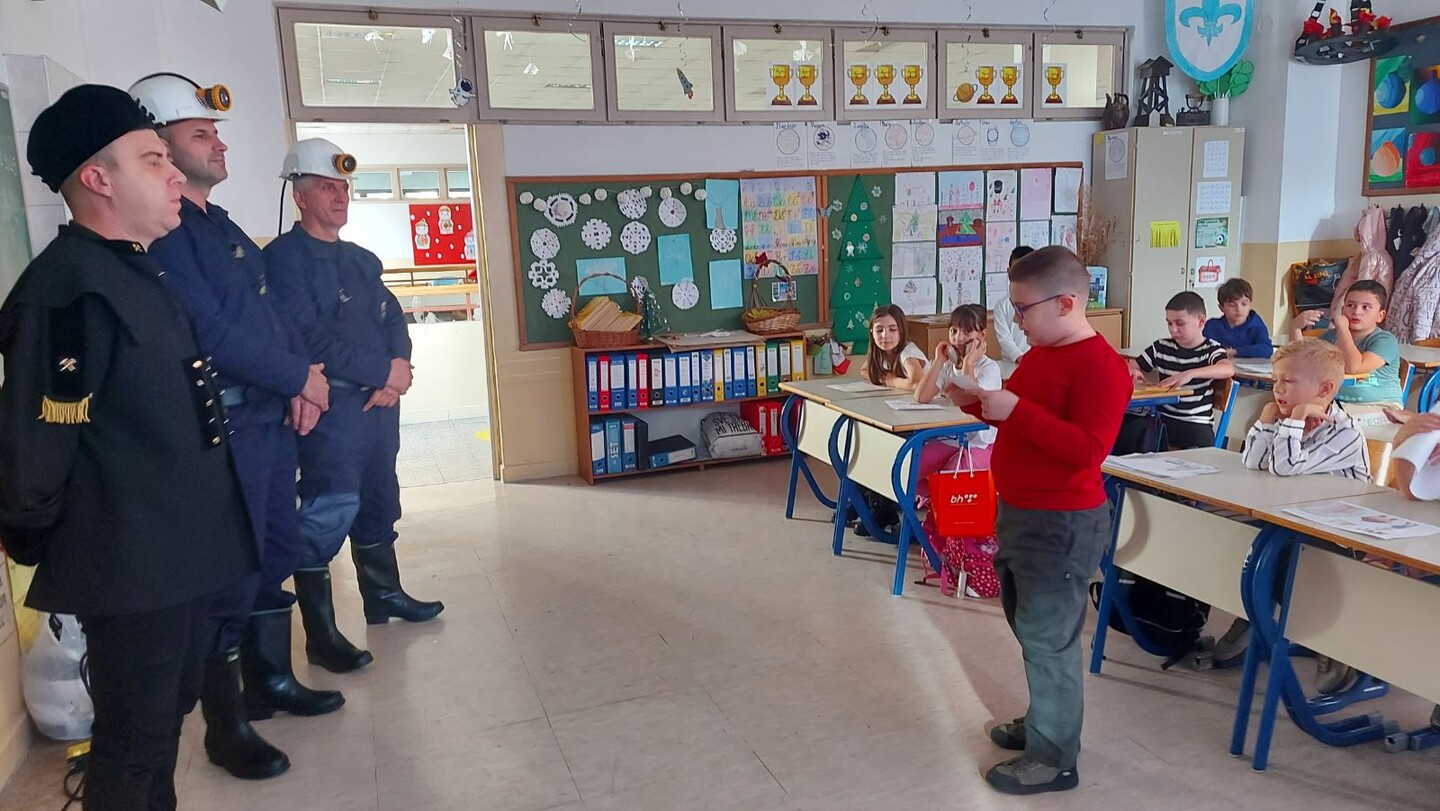 Povodom Dana rudara, (21.12.), učenike 2.b razreda posjetili su rudari rudnika " Kreka". Tokom posjete rudari su se družili sa učenicima, razgovarali o svom zanimanju i značaju rudarstva. U ugodnoj i veseloj atmosferi rudari su učenicima podijelili i prigodne poklone, što ih je posebno obradovalo. Posjeta je protekla u ugodnom raspoloženju i ostala u lijepom sjećanju učenicima.