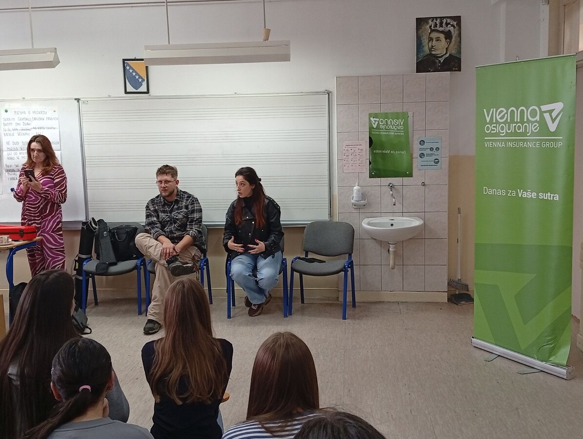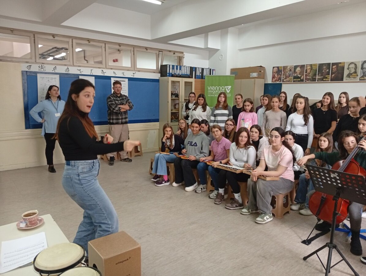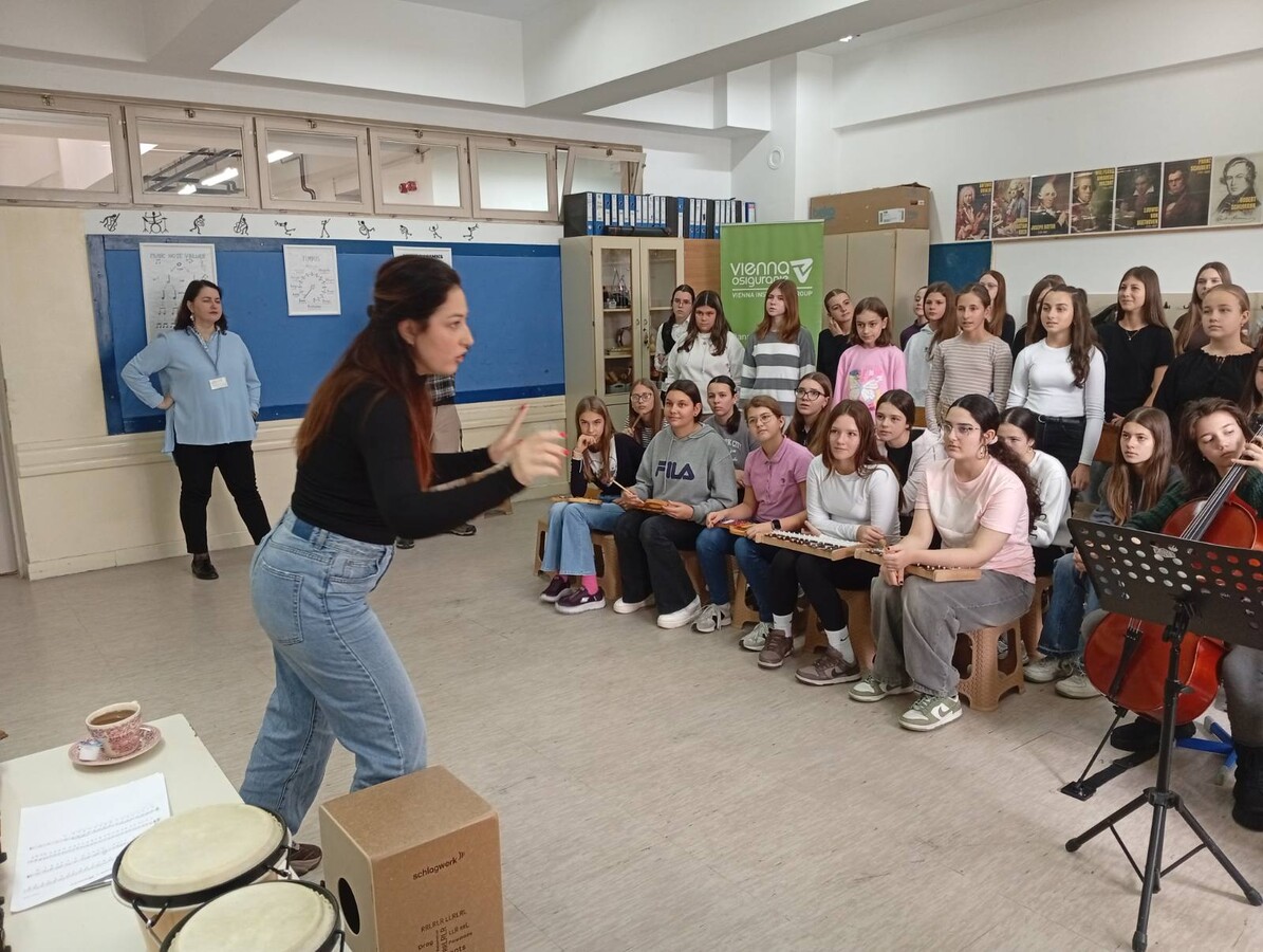 Danas je u našoj školi održana muzička radionica sa članovima školskog hora i orkestra koji vodi nastavnica Selina Pirić. Posjetili su nas članovi žirija koji su nas prošle školske godine proglasili pobjednicima u okviru 9. sezone projekta "U zdravoj školi zdrava djeca" u organizaciji Vienna osiguranja. Naši gosti bili su Maja Manojlović prof. solo pjevanja iz Banja Luke i Tihomir Radić (Toshi Domaćin ) član grupe Helem Nejse, te predstavnica osiguranja Irmela Cero iz Sarajeva.
