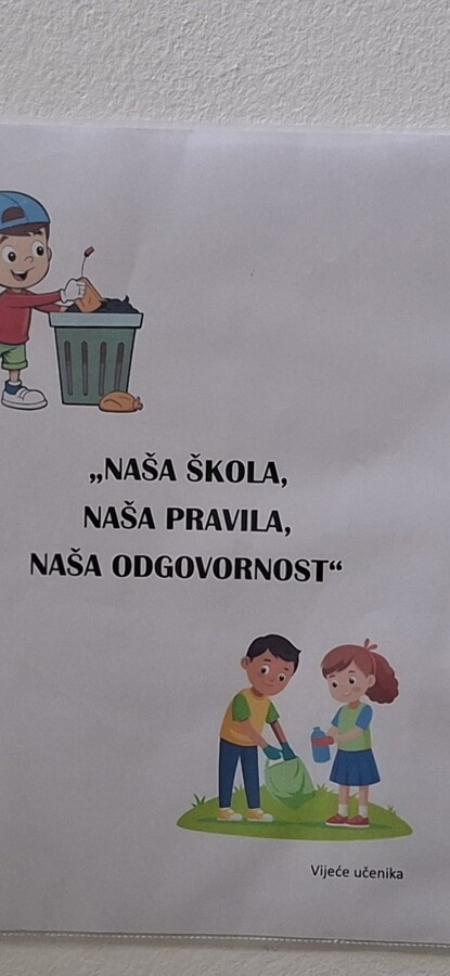 "Naša škola - naša odgovornost" je projekat Vijeća učenika koji ima za cilj podizanje svijesti učenika o očuvanju čistoće unutar škole i njenog okruženja. Vijeće uĉenika djeluje u ulozi "Eko ambasadora" pod sloganom "Umjesto smeća, baci lošu naviku" aktivno promovišući savjestan odnos prema životnoj sredini. Kroz aktivnosti i lični primjer podstiču učenike na odgovorno ponašanje i razvijanje ekološke kulture.